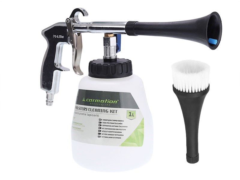 Set uključuje dve zamenske mlaznice prečnika 58 mm i 32 mm, koje omogućavaju čišćenje većih površina, ali i teško dostupnih uglova i otvora. CarMotion pneumatski pištolj predstavlja sveobuhvatno rešenje za mokro čišćenje automobila i unutrašnjih površina, kombinujući snagu, preciznost i praktičnost. Njegova izdržljivost i efikasnost čine ga neophodnim alatom za svakog ko želi besprekoran izgled vozila