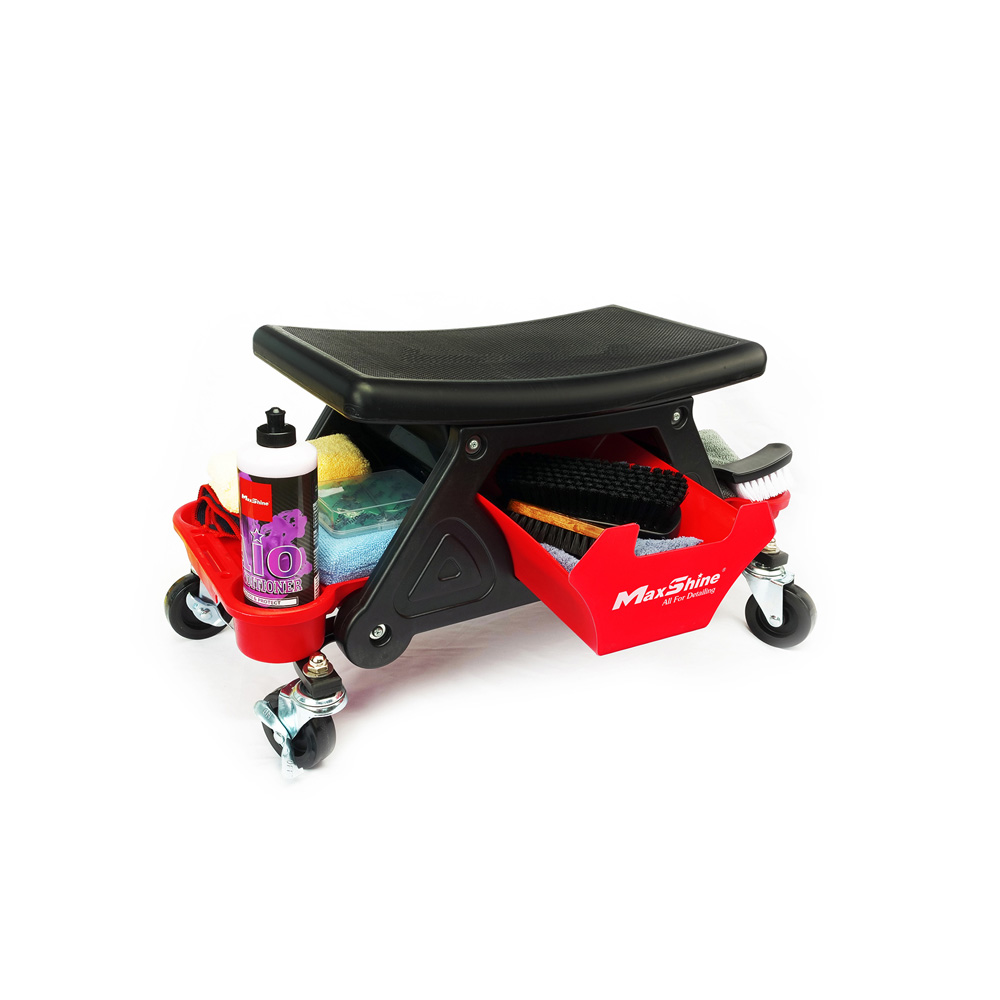 MaxShine Stolica Sa Točkovima i Držačima Za Boce je neizostavan dodatak svakoj garaži ili radionici koja se bavi detaljnim čišćenjem i poliranjem vozila. Ova stolica je osmišljena da vam olakša rad i pruži udobnost tokom svakog koraka vašeg posla.